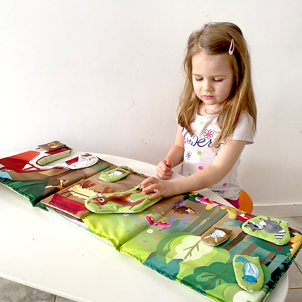 A felületén több varrt tépőzár, melyekre rárakható különböző dekoráció, kiegészítő. Találsz még egy ajtót ahol az állatok ki be sétálhatnak az istállóba.